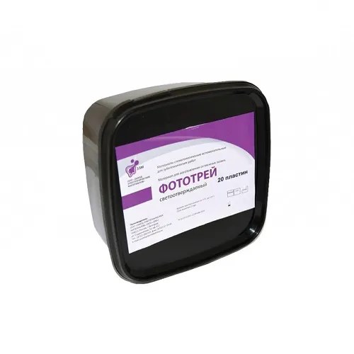 Материал «Фототрей» представляет собой высоконаполненную (>85%) пасту на основе метакрилатных олигомеров, в состав которой входят: модифицированный тонкодисперсный наполнитель, инициирующая система, стабилизатор радикальной полимеризации, пищевой краситель и отдушка.