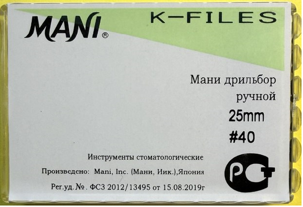 Дрильборы ручные К-Files (Mani) № 40 (25 мм) - 6 шт.