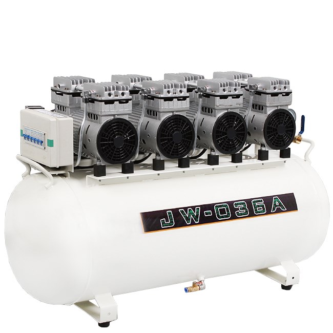 Безмасляный стоматологический компрессор для 8 стоматологических установок с ресивером на 90 л и производительностью 450 л/мин.